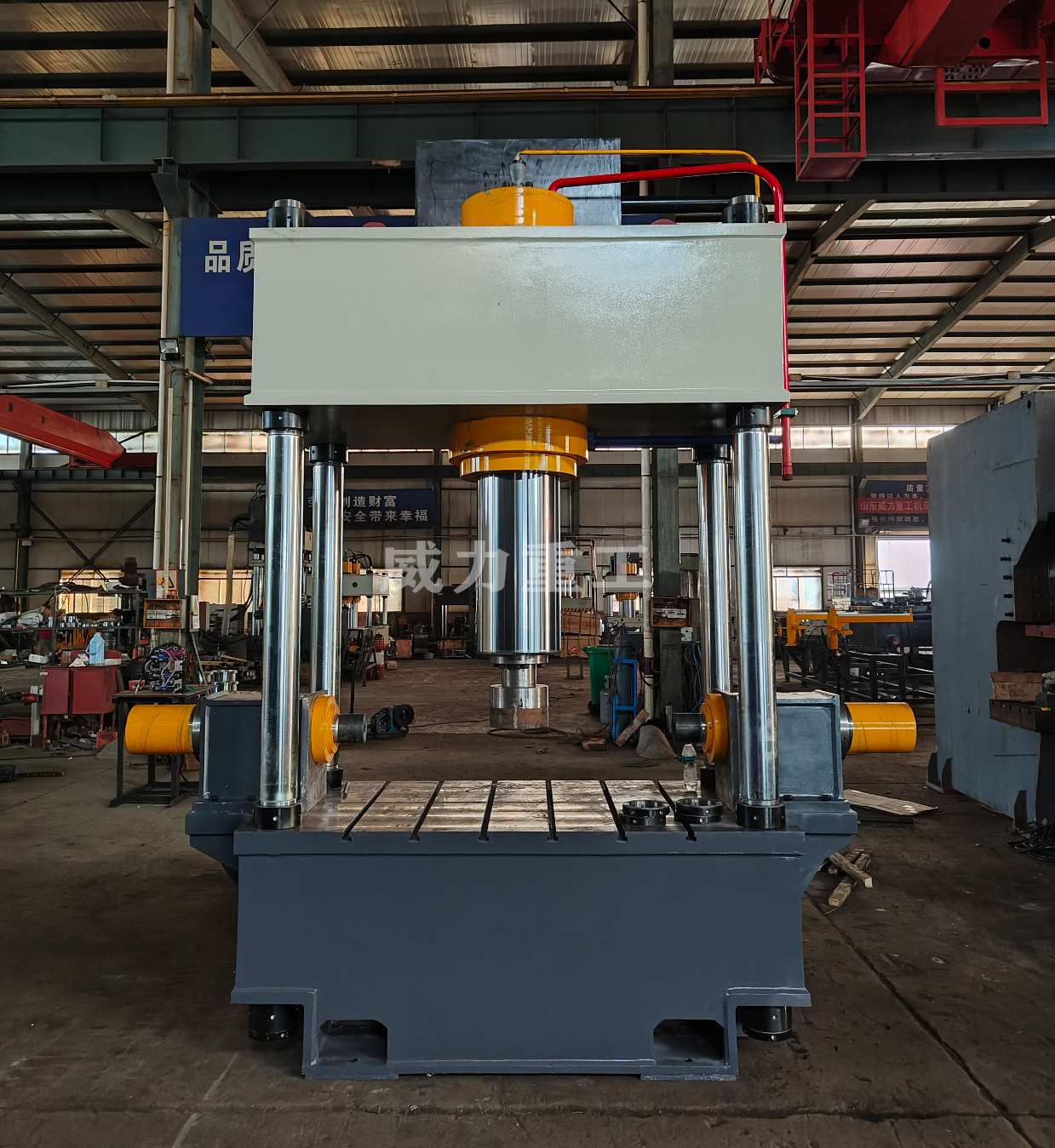 2. 開(kāi)始工作:通過(guò)操縱控制面板上的按鈕,啟動(dòng)液壓系統(tǒng),液壓缸開(kāi)始運(yùn)動(dòng),上梁向下施加壓力。