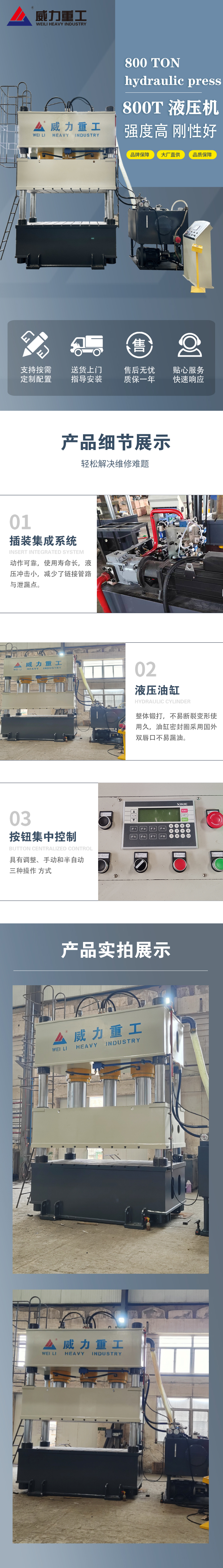 【產(chǎn)品描述】:復(fù)合材料壓制成型液壓機(jī)是一款專為復(fù)合材料壓制成型而設(shè)計(jì)的高效設(shè)備。該設(shè)備集成了先進(jìn)的液壓技術(shù)、自動(dòng)化技術(shù)和精密控制技術(shù),為復(fù)合材料行業(yè)提供了強(qiáng)大的生產(chǎn)力和質(zhì)量保障。 復(fù)合材料壓制成型液壓機(jī)采用三梁四柱式結(jié)構(gòu),工作臺和控制邏輯閥集成一體,結(jié)構(gòu)緊湊、動(dòng)作可靠、維護(hù)方便。設(shè)備采用按鈕集中控制,具有調(diào)整、手動(dòng)和半自動(dòng)三種操作方式,方便用戶根據(jù)