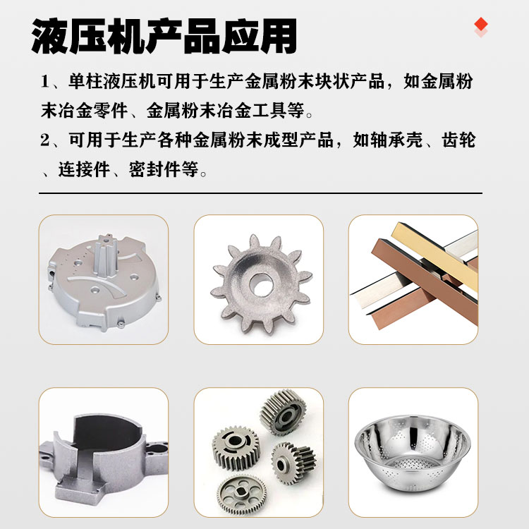 單柱液壓機在冶金粉末成塊的應用以及壓制產品方面具有重要作用。在金屬粉末冶金成型過程中,單柱液壓機通常用于將金屬粉末壓制成塊狀、片狀或其他形狀的工件。